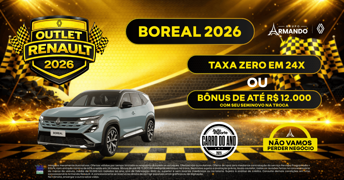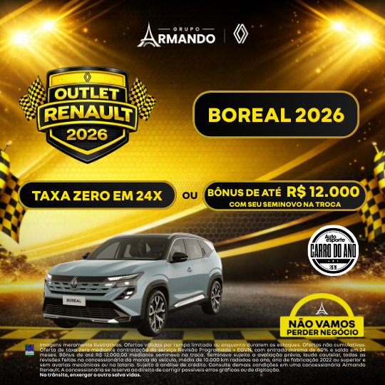 Imagens meramente ilustrativas. Ofertas válidas por tempo limitado ou enquanto durarem os estoques. Consulte condições em uma concessionária Armando Renault. A concessionária se reserva ao direito de corrigir possíveis erros gráficos ou de digitação. Desacelere. Seu bem maior é a vida.