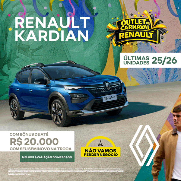 Imagens meramente ilustrativas. Ofertas válidas por tempo limitado ou enquanto durarem os estoques. Oferta de bônus de até R$ 20.000,00 mediante seminovo na troca. Seminovo sujeito a avaliação prévia, laudo cautelar, todas as revisões feitas na concessionária da marca do veículo, média de 10.000 km rodados ao ano, ano de fabricação 2022 ou superior e sem avarias mecânicas ou na lataria. Sujeito à análise de crédito. Consulte demais condições em uma concessionária Armando Renault. A concessionária se reserva ao direito de corrigir possíveis erros gráficos ou de digitação. No trânsito, enxergar o outro salva vidas.